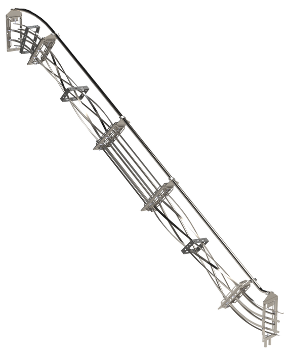 5/8" half-round stainless steel with a reinforced topside backbone, built to the same standards used by major can manufacturers. Bolts directly to depalletizer and filler without additional support structures.