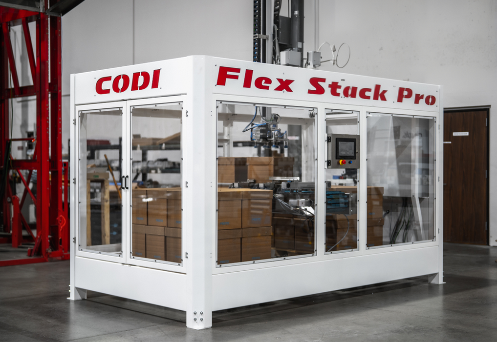 Manual palletizing is one of the most injury-prone jobs on a production floor. CODI's Flex Stack is a compact gantry palletizer and depalletizer built for facilities where floor space is limited and labor is at a premium. Unlike collaborative robots (cobots) with limited payload capacities, Flex Stack handles up to 110 lbs per pick, making it capable of stacking heavier cases that cobots simply can't manage. It runs 4 to 15 cases per minute depending on configuration, supports single, dual, or triple bay pallet stations, and uses a browser-based interface that lets your team adjust patterns and case dimensions without outside programming support. Simple linear gantry mechanics mean fewer wear points and more predictable maintenance than multi-axis robots. It works across food and beverage, co-packing, CPG, and industrial applications, and for most operations labor savings alone bring ROI within the first year.